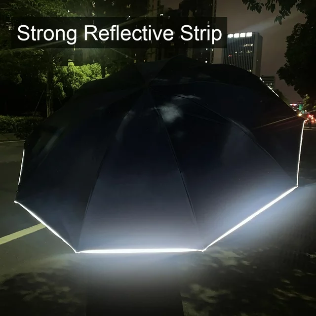 Reflective Strip Design: This umbrella is equipped with reflective strips along the edges, enhancing your safety while walking on dark roads. Stay visible and secure with this thoughtful feature.