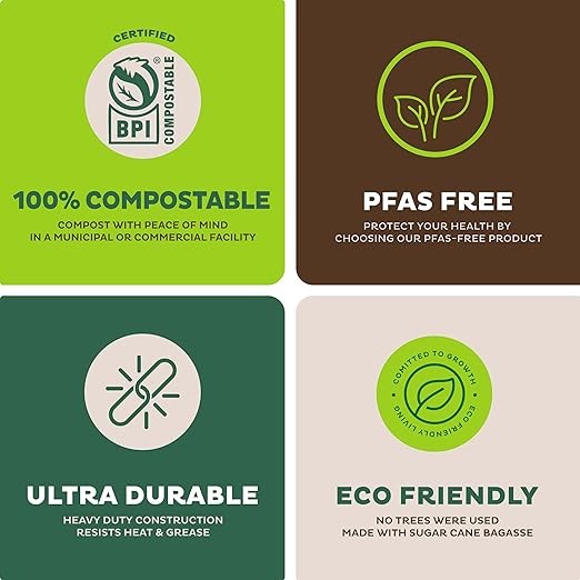 BIODEGRADABLE CHAMPIONS: These BPI-certified 100% compostable all-stars aren't destined for the landfill. At a commercial compost facility, they'll return to nature in 90 days flat. Zero waste, maximum impact! We really love our planet and are committed to keeping it clean!