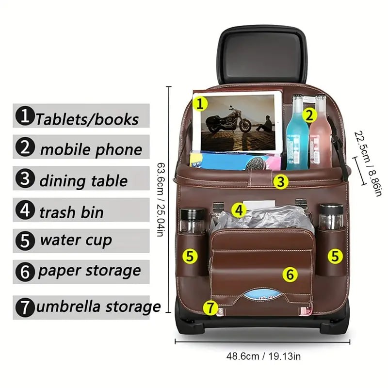 bag, 1pc car seat back faux leather luxury storage bag with dining tray tissue box garbage bag hanging bag rear seat back storage bag details 1bag, 1pc car seat back faux leather luxury storage bag with dining tray tissue box garbage bag hanging bag rear seat back storage bag details 1