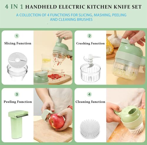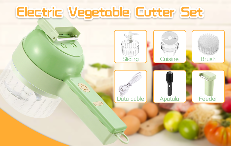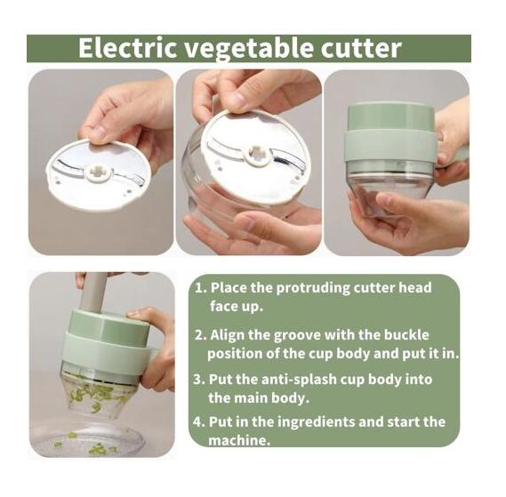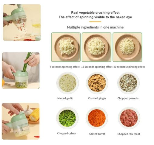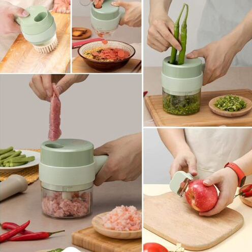 4 in1 Mini Handheld Electric Vegetable Cutter Set Wireless Food Chopper Grinder