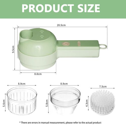 【4 in 1 Handheld Electric Vegetable Cutter Set】 Handheld electric vegetable cutter set includes 4 in 1 functions of slicing, cooking, peeling and cleaning brush. with it, you can have an electric vegetable slicer and an electric meat grinder at the same time. one machine is multi-purpose, making food preparation easier and faster. one-key cleaning, the whole machine is rinsed, the feed port is added with water to start with one key, and it can be stirred and cleaned for 5 seconds.