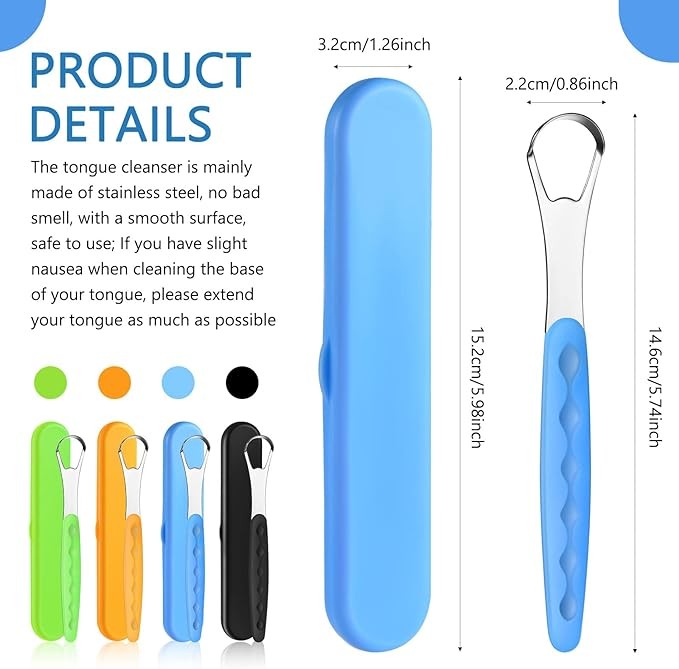 • What You Will Receive: the package contains 4 pieces of tongue scrapers in 4 colors, including orange, black, green and blue, avoiding confusion when family members use them, with 4 storage cases equipped for easy storage