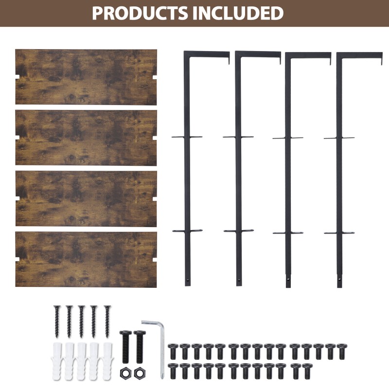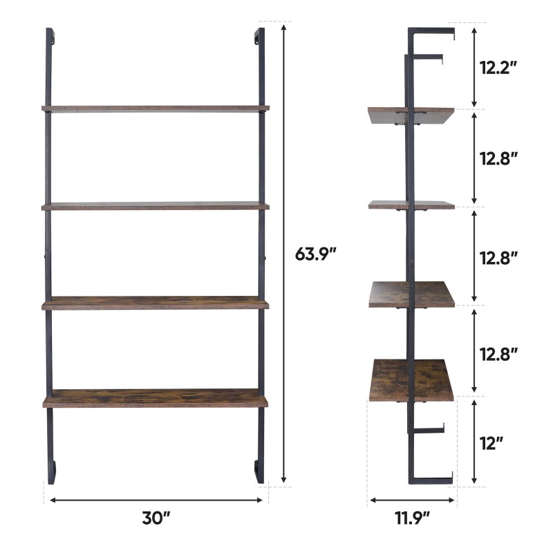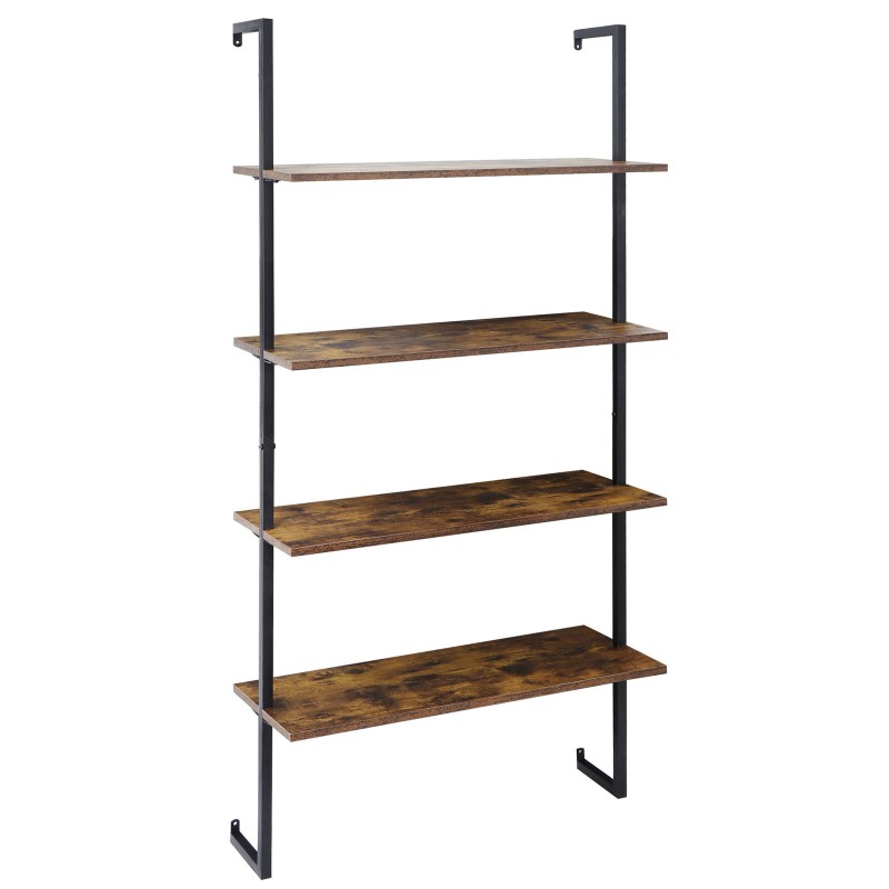 4 Tier Pipe Bookshelf Wall Mount Shelf Floating Bookcase Industrial Metal Frame