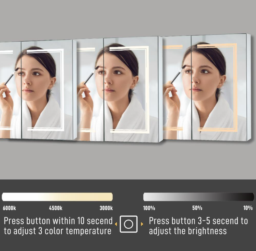 【Anti-fog】With build in defogger pad concealed inside the door ,controlled by individual switch. Rapidly heating up and providing steam free viewing.
