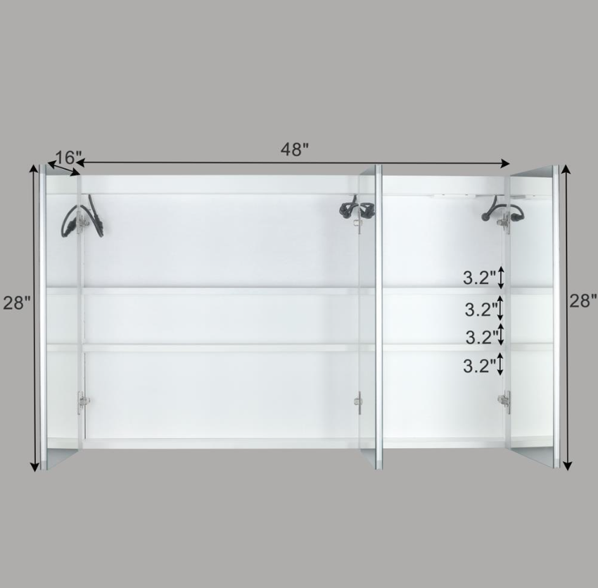 48x28in Bathroom LED Lighted Medicine Cabinet Wall-mounted with Charging Station