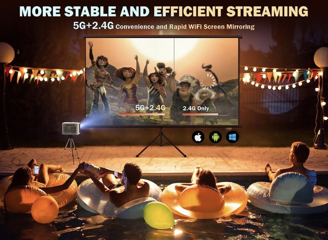 5G WiFi Mini Bluetooth Projector 4K Support,Smartphone Projector Movie for PC/TV