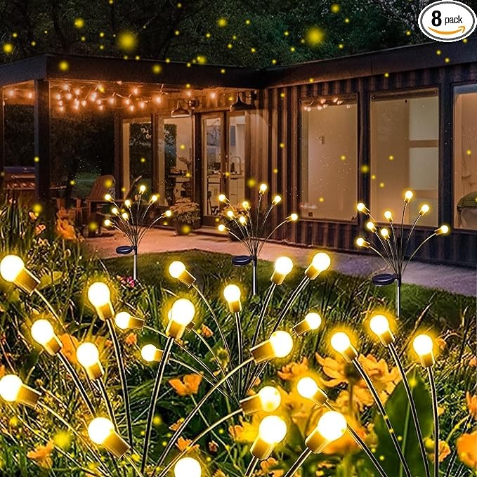 Flumy Solar Lights Outdoor Waterproof 2 Pack, Upgraded Outdoor Solar Lights for Yard Patio Garden Decor, Solar Lights for Outside Gardening Supplies, Firefly Garden Lights Solar Powered Outdoor