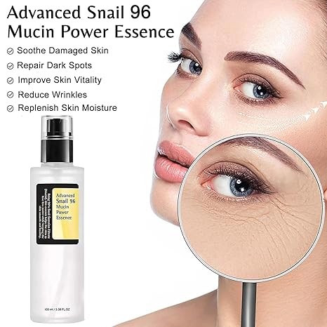 • 【Snail Mucin Serum】Formulated with 96% Snail Secretion Filtrate, this essence repairs and rejuvenates the skin from dryness and aging. It improves skin vitality by reducing dullness and soothing dehydrated skin.