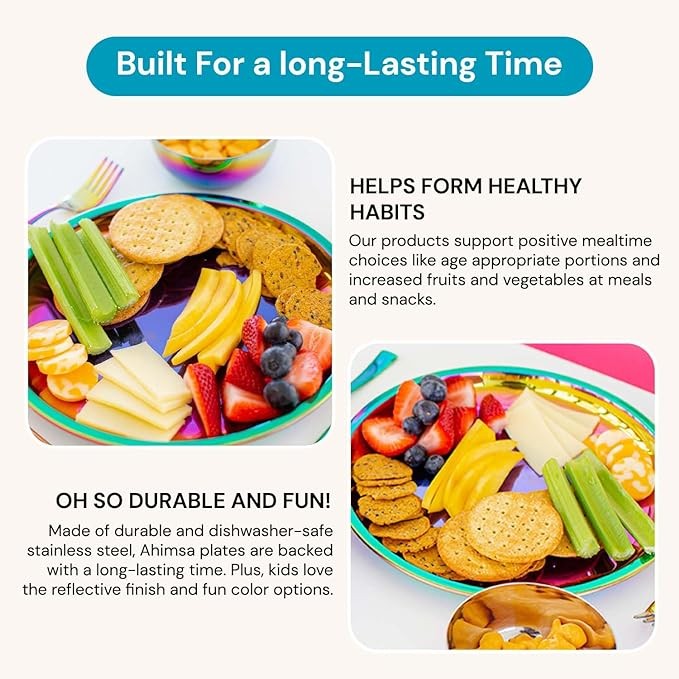 ✅Non-toxic Stainless Steel Material: Created using premium quality non toxic stainless steel, our purposeful round dinner plates prioritize your child's safety and well-being. Free from harmful substances like BPA, PVC, Phthalates, Melamine, and Lead, they guarantee a non-toxic dining experience. Ideal for health conscious families, they offer complete peace of mind.