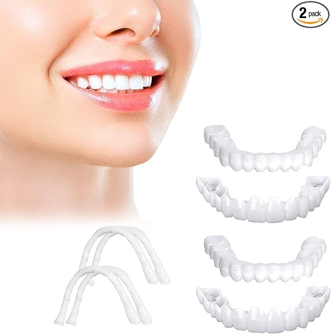 【EASY TO USE】Before use, soak Fake Teeth in hot water for 1 minute to make it flexible and adjustable to fit your teeth. Makes you smile more confidently when talking to your friends.
