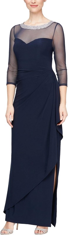 Sweetheart Illusion Neckline with Embellishment Detail & Illusion 3/4 Sleeves