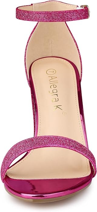 Allegra K Women's Glitter Ankle Strap Chunky Heels Sandals