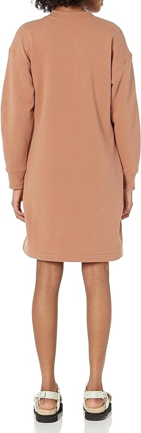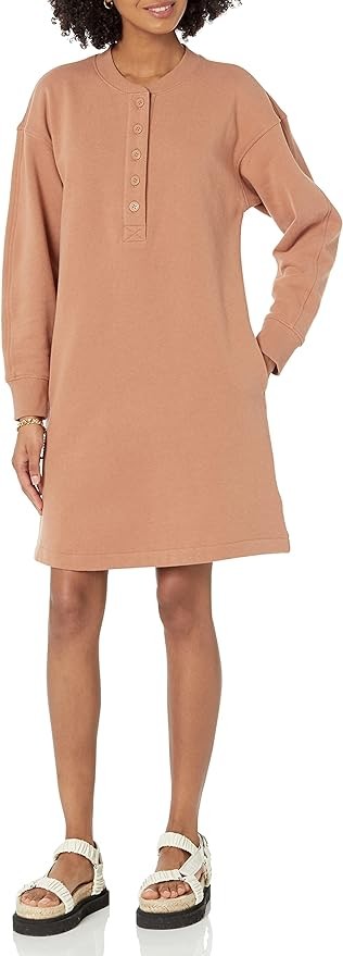 HENLEY SWEATSHIRT DRESS: Easy, everyday sweatshirt dress with slightly dropped shoulders and soft volume sleeves for a relaxed look. Perfect for work, travel, weekend wear, or lounging at home.