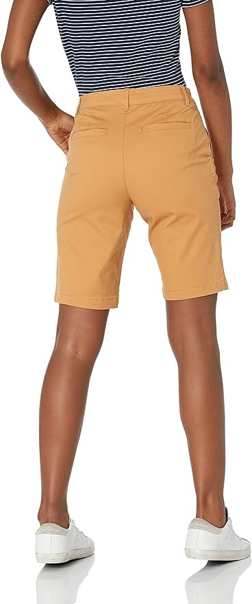 CLASSIC BERMUDA SHORT: These classic chino shorts offer a stylish, longer length silhouette, perfect for spring/summer dressing at work, weekend exploring, or running errands. Complete your look with Amazon Essentials Women's Sneakers or Sandals.