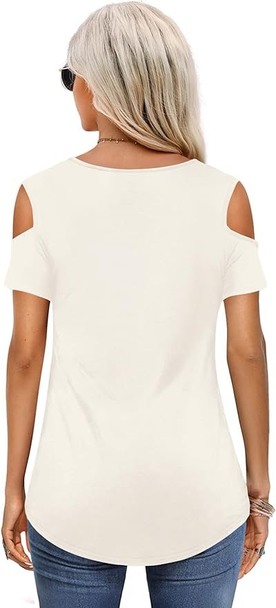 • Casual cold shoulder tops, v neck curved hem, short sleeve tshirts.