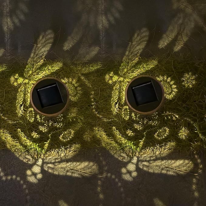 Exquisite Patterns: These Solar Pathway Lights are designed with vintage cutouts that cast beautiful patterns on the lawn, creating a warm and welcoming atmosphere.