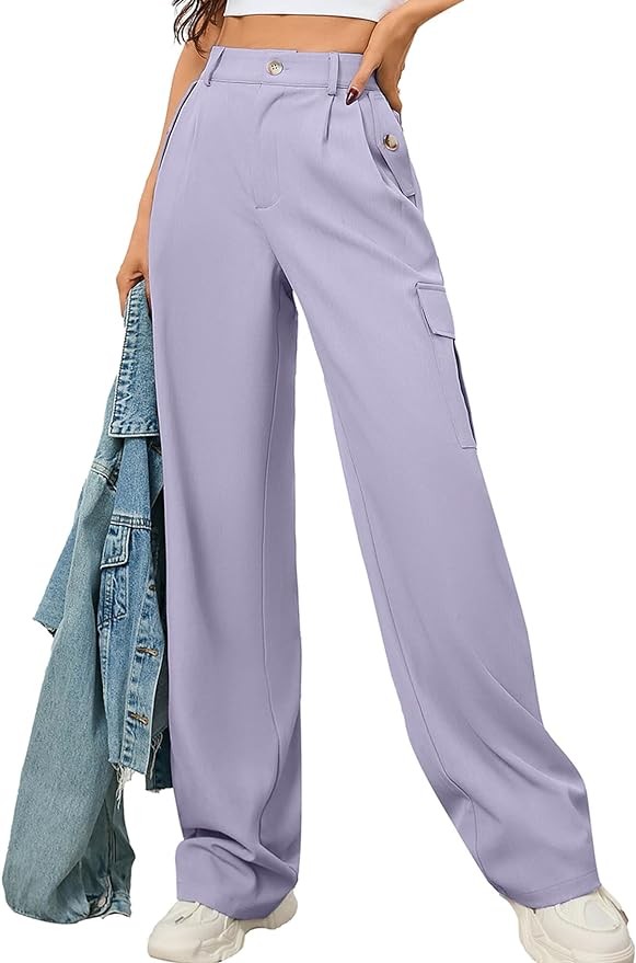 Feature: These women cargo pants has 4 pockets, stretch elastic high waist, relaxed fit, zipper and button closure, joggers sweatpants, wide leg cargo pants, and the loose fit is ideal for casual or sporty.
