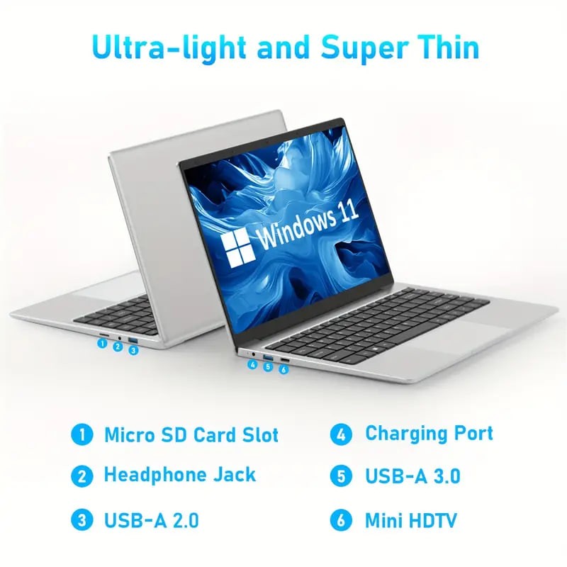 Auusda Laptop With 8GB LPDDR4 512GB SSD, Intel Celeron J4125 Up To 2.5 GHz, 14.1 1920x1080 IPS, Webcam, Mini HD, USB-A X 2, Micro SD Card Slot, Windows 11 Pro, Expandable Storage details 2Auusda Laptop With 8GB LPDDR4 512GB SSD, Intel Celeron J4125 Up To 2.5 GHz, 14.1 1920x1080 IPS, Webcam, Mini HD, USB-A X 2, Micro SD Card Slot, Windows 11 Pro, Expandable Storage details 2