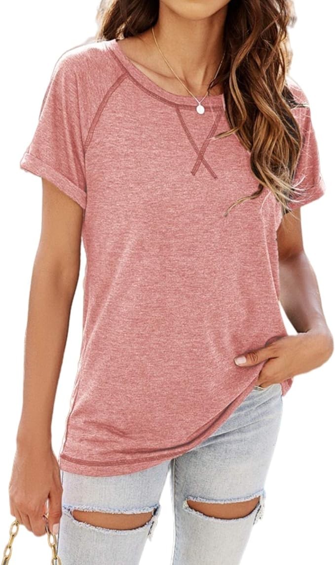 • Features: Women's T-shirts, Casual short sleeve shirts for women, Loose fit crewneck raglan tshirts ,workout tops for women short sleeve. Year-round basics and the ideal go-to for daily wear.