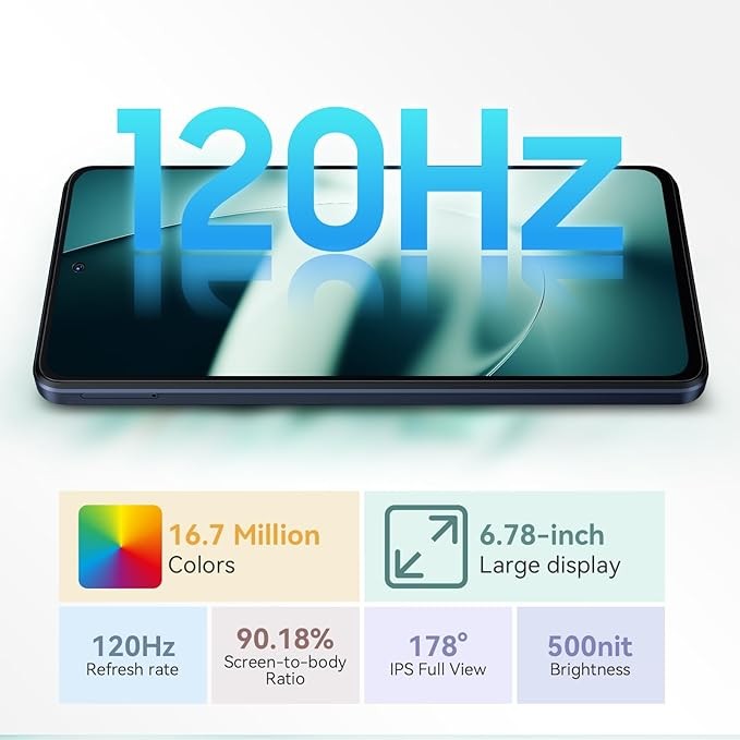 ?【120Hz 6.78-inch Large Screen & Smart-K Box Speaker】? Blackview SHARK 8 smart phone features a 6.78-inch 2.4K display, offering over 90% screen usage and a smooth 120 Hz refresh rate (1080 x 2460), providing a more comfortable viewing experience. High-fidelity colors, clear images, and Smart-K box speaker technology make movies and games more exciting. Enjoy full viewing angles, 10-point touch technology, and a bright display of up to 500 nits for happy moments anytime.