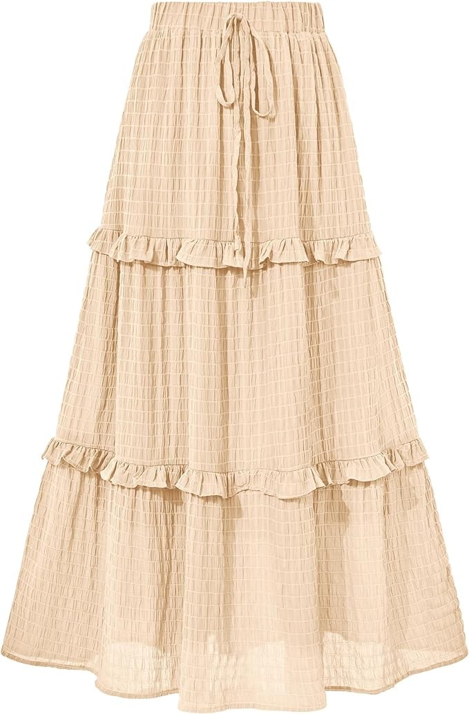 • NOTICE: Decorative Drawstring / Women's Summer Skirts / Spring Midi Skirt / Skirt For Women Summer / Elastic High Waist Skirt / Soft And Lightweight Fabric / Solid Color Long Skirts / Ruffle Tiered Skirt For Women / Flared A Line Skirts / Size: S=US 4-6, M=US 8-10, L=US 12-14, XL=US 16-18, XXL=20-22