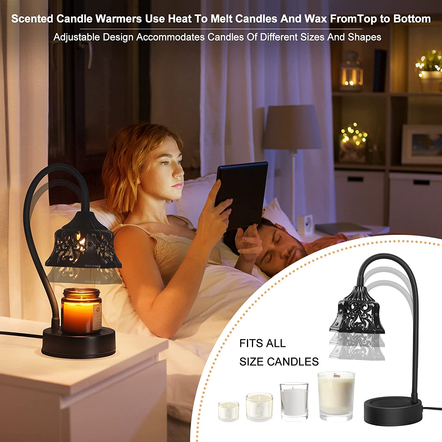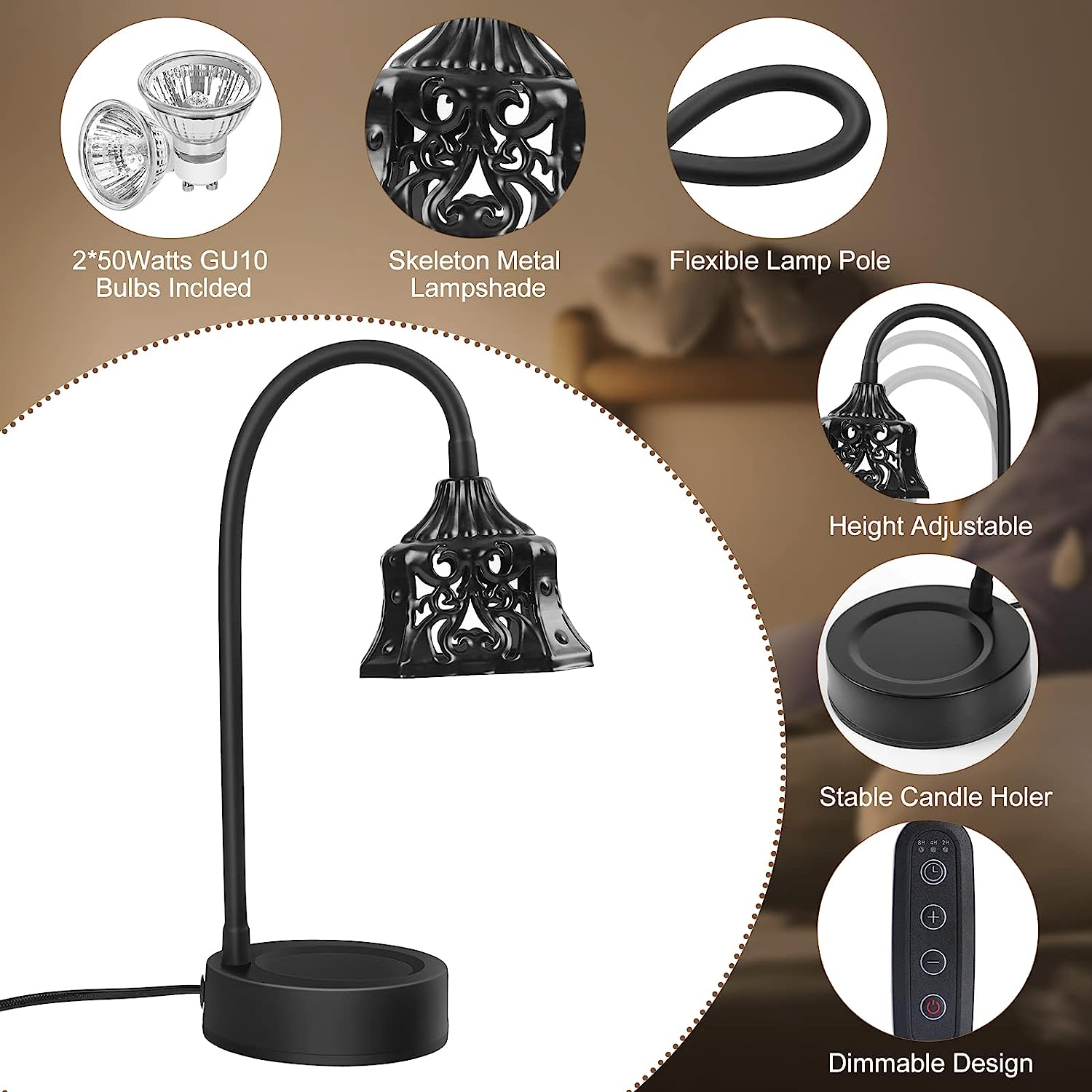 Candle Warmer Lamp, with 2 Bulbs, Candle Lamp with Timer & Dimmer, Height Adjust