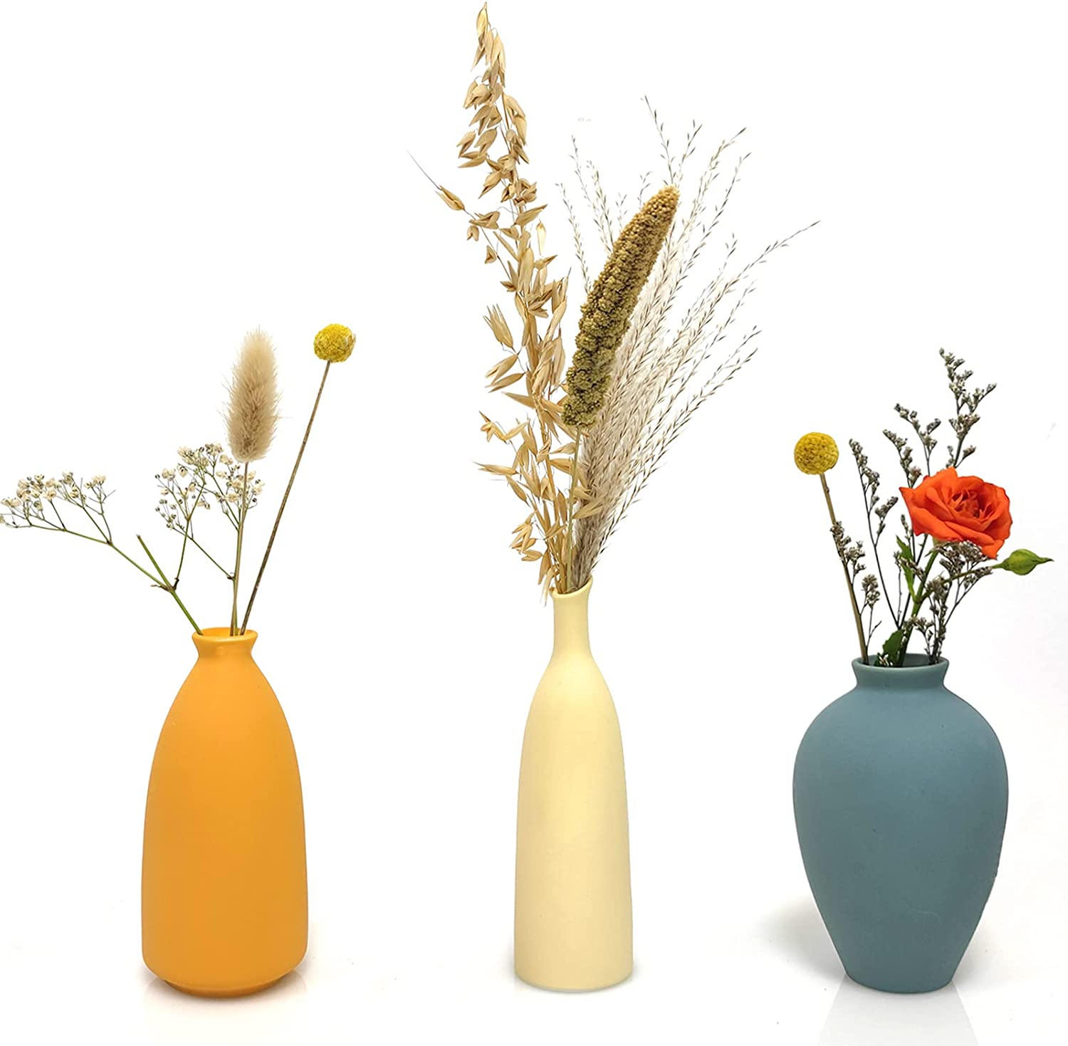 Ceramic Vase Set of 3 Small Flower Vases for Rustic Home Decor Modern Farmhouse