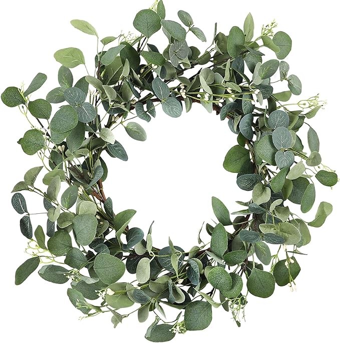 Size: Fully expanded eucalyptus wreath, the inner diameter is about 25cm/10 inches; outer diameter is about 48cm/19 inches.