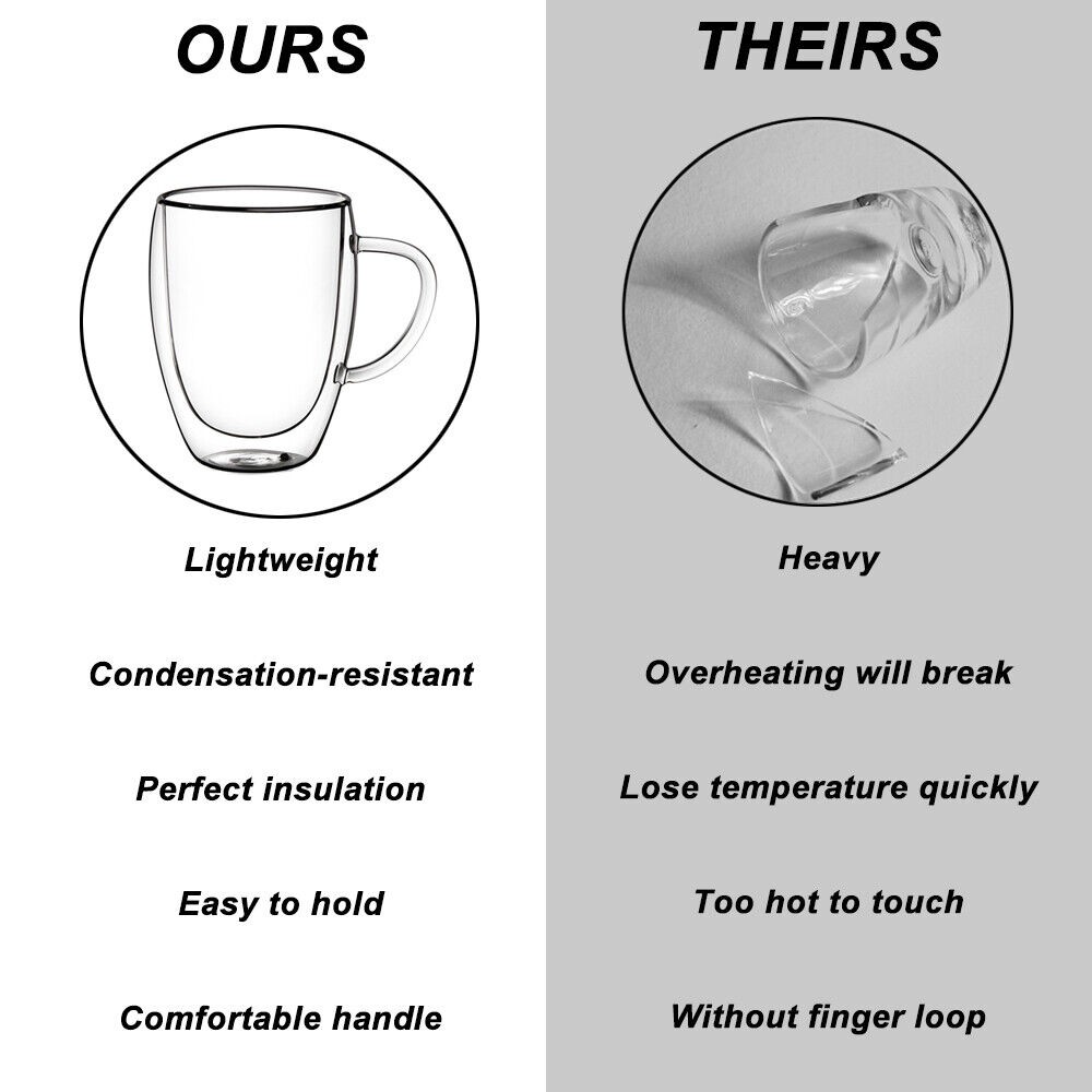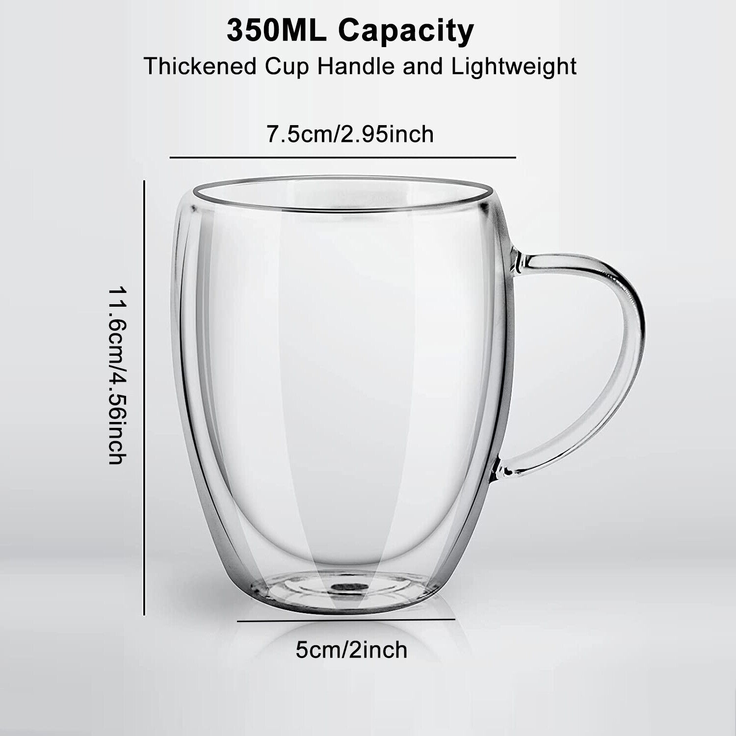 Coffee Glass Double Wall Insulated Glass Mug Tea Cup with Handle 150/250/350/450