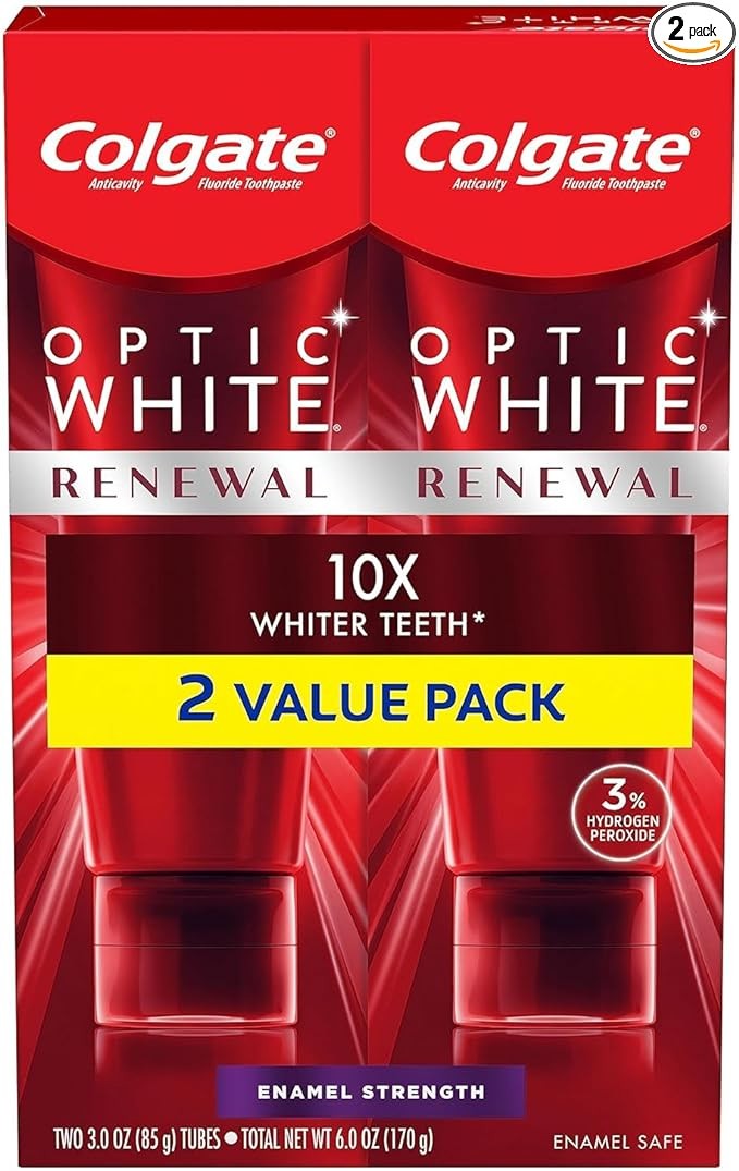 • Two 3 oz. tubes of Colgate Optic White Renewal Whitening Toothpaste, Enamel Strength