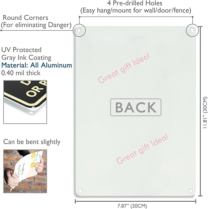 SIZE & MATERIAL: Measures 8" x 12" and is constructed of durable Aluminum, can be bent slightly and not to deform, with four smooth round corners for eliminating the hazard.