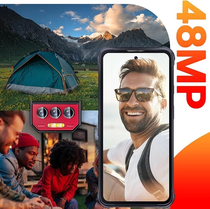 [Capture the best moments of your life] CUBOT King Kong 8 smartphone comes with a 48-megapixel main camera, a 16-megapixel front-facing camera, and a 2-megapixel macro camera.The 48-megapixel main camera has higher sensitivity and color fidelity, so you can capture vibrant textures and colors every time you take a picture.