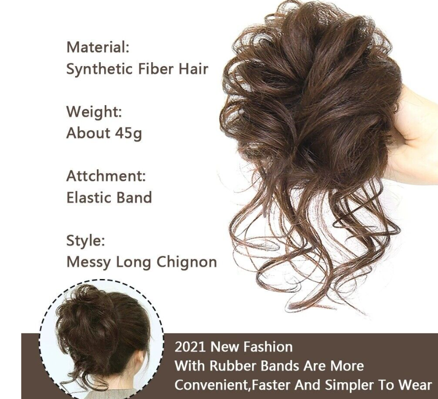 1) New style of the synthetic synthetic hair bun Chignon Ponytail Drawstring Hairpieces2) 100% heat resistance synthetic fibre3) Texture: Curl4) 5 kinds of Colors available5) Diameter: 14cm6) Weight: 60grams7) Thicker