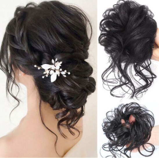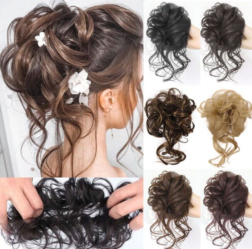 1 x Real Thick Curly Messy Bun Hair Piece Scrunchie Natural Hair Extensions