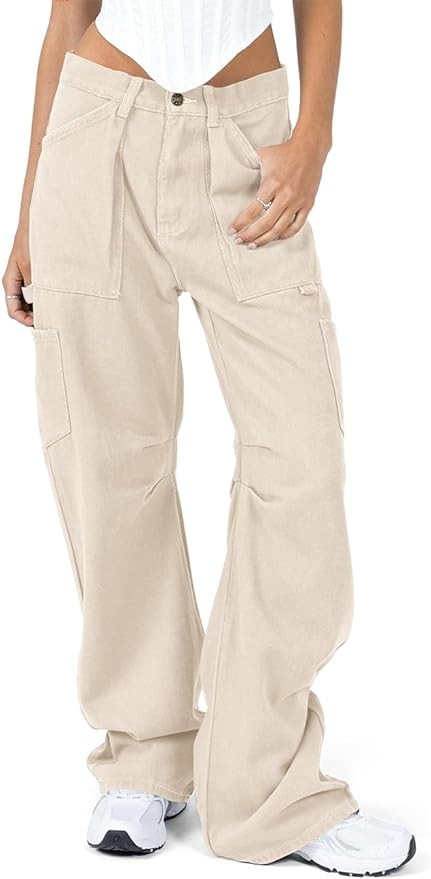 CARGO PANTS FOR WOMEN:These timeless pants are featured in a mid rise,loose fit and back elastic waist for ease.Sleek with a tucked in tube top or laid back with a simple crop tee, this pair has endless ways to wear.
