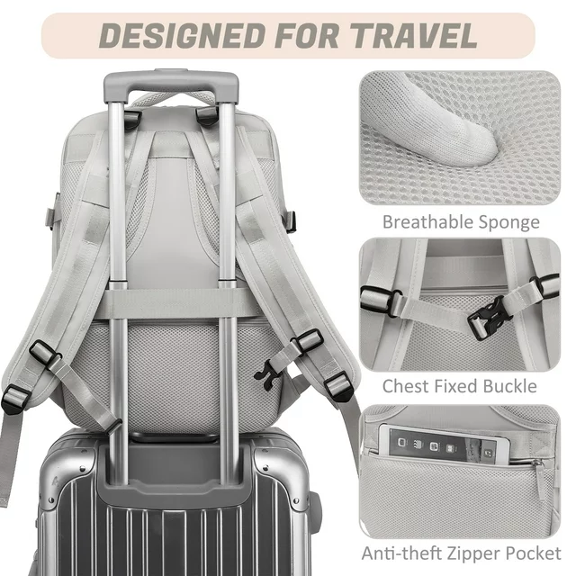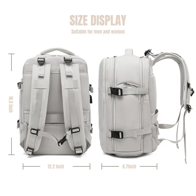 Derstuewe Large Travel Backpack for Women Men, Carry On Backpack for Outdoor Sports , Waterproof Laptop Bag with USB Charging Port, Backpack Flight Approved,Grey