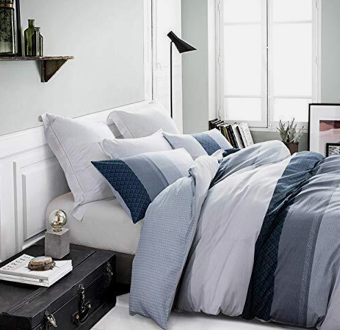 ★REVERSIBLE DESIGN – Modern patchwork pattern and blue shade color, you can change the pattern of the front and back of the duvet cover by mood. A color, a mood