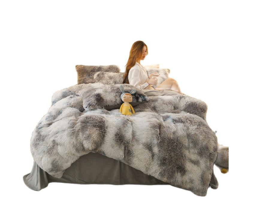 Duvet Cover Set Artificial Long Mink Hair Warm Bedding Set Heart Cushion Pillowc