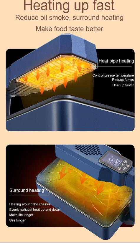 Feature: 1.Heat pipe heating Control the temperature of grease, reduce oil fume, heat light far infrared heating, and heat up faster. 2.Surround heating The chassis is heated around, and the upper and lower exhausts are evenly exhausted for heat dissipation, which has a long service life and a longer use time. 3.LCD liquid crystal screen Control the temperature by yourself, easily realize the freedom of barbecue, easy to operate, and control the deliciousness by yourself 4.Smokeless BBQ Don't worry about oil fumes, the best choice for family gatherings, colleagues' dinners, one person's food. Specification: Voltage: 110VRated power: 850W Touch screen mode: LCD touch screen Product color: Blue Product size: 37 x 22 x 27cm = 14.56 x 8.66 x 10.62 inch Package include: 1 x Electric Infrared Grill Note: Due to the different monitor and light effect, the actual color of the item might be slightly different from the color showed on the pictures. Thank you! Please allow 1-2cm measuring deviation due to manual measurement. |