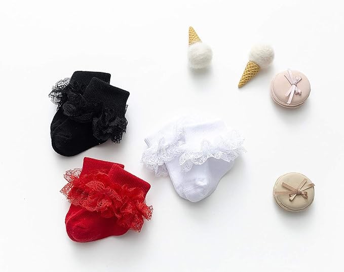 Turn Cuff,Unique Triple Frilly Lace Socks Super Cute for Dress up,or Everyday Wear.Made of a Cotton and Spandex blend.Soft and Breathable.The Stretch of These are Nice not too Tight and Does Not Over Stretch.