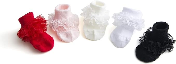 GIFT BOX SET:This is 3/5 pairs pack;White/Baby Pink/Cream/Black/Red.Simply adorable and fashion.Every baby girls love them.
