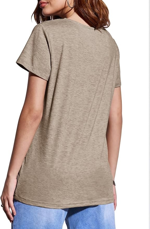 • FASHION WOMENS TOPS - Short sleeve T shirts for women summer casual. Sexy V neckline Criss Cross T-Shirts. Casual loose fit cotton womens tops.