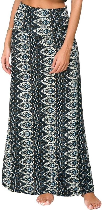 EXCHIC Women's Bohemian Style Print/Solid Elastic Waist Long Maxi Skirt