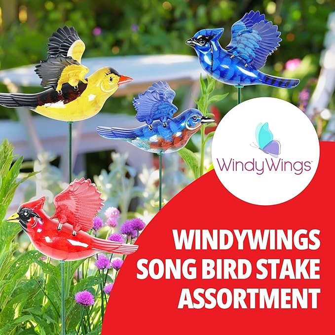 • KINETIC SONGBIRD SCULPTURE: Our song bird garden wind sculptures are bursting with personality and a great way to delight your guests and add vibrant color to your garden, lawn or yard area; these wind spinner garden decorations come in assorted designs, are hand painted to add a realistic touch, and every garden stake is UV treated to ensure enjoyment for years to come