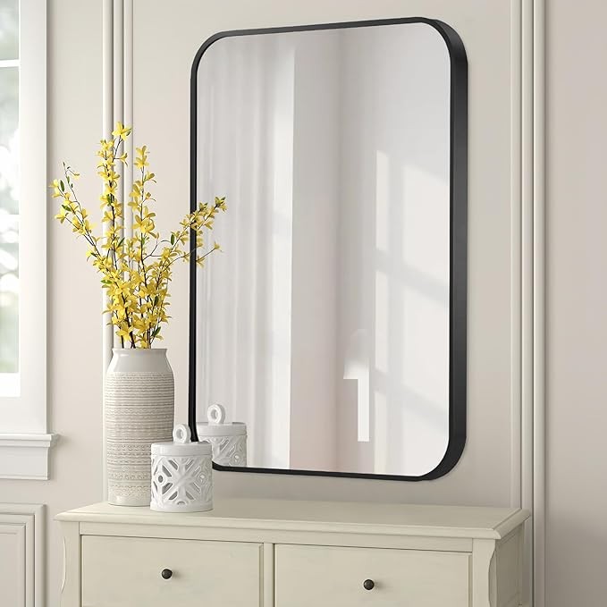 FARMER 20x28 Inch Rectangle Bathroom Mirror, Brushed Black Vanity Mirrors for Wall, Metal Frame Wall Mirror, Vanity Mirror with Round Corner for Bedrooms, Entryways, Living Rooms, Horizontal/Vertical