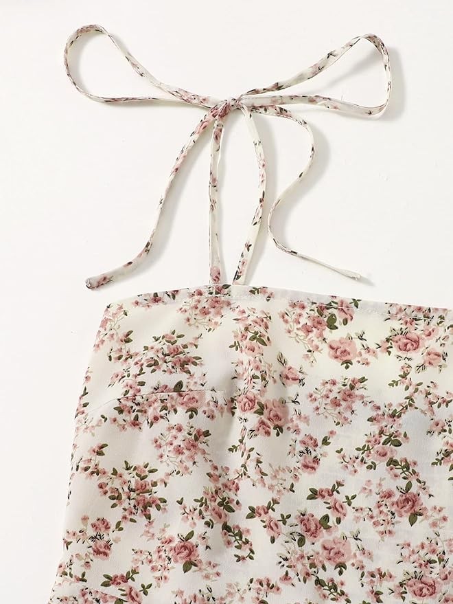 Floerns Women's Summer Floral Cherry Print A Line Short Cami Dress
