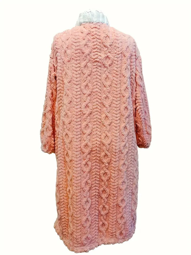 flower decor fuzzy night robe cute long sleeve v neck robe with pockets womens sleepwear details 0flower decor fuzzy night robe cute long sleeve v neck robe with pockets womens sleepwear details 0
