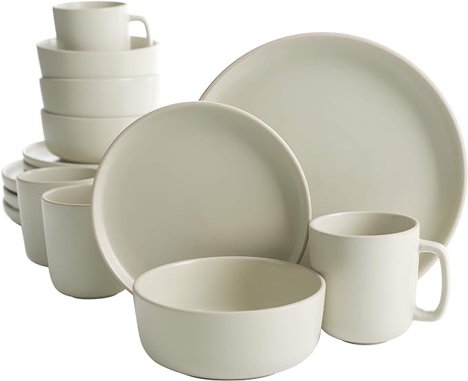 Gibson Home Zuma 16 Piece Round Kitchen Dinnerware Set, Dishes, Plates, Bowls, Mugs, Service for 4, Matte Stoneware, Cream