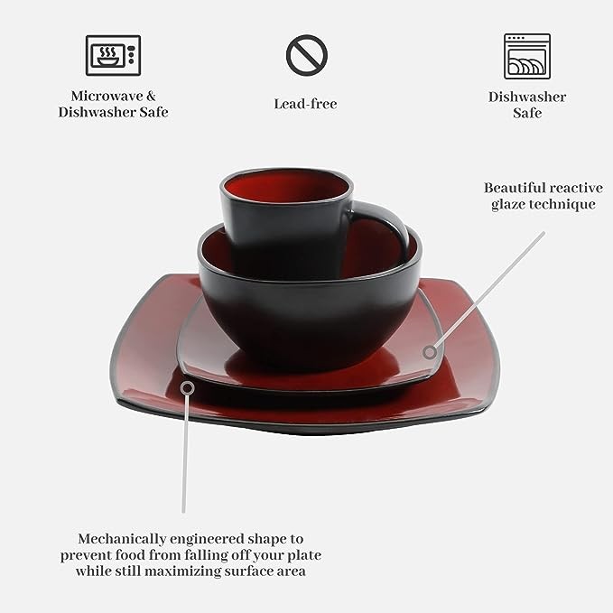 CARE INSTRUCTIONS: beautiful red and black dishes that are also dishwasher and microwave safe