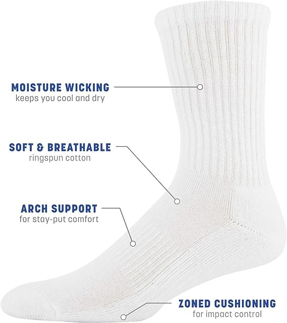 Gildan Men's Active Cotton Crew Socks, 10-pairs